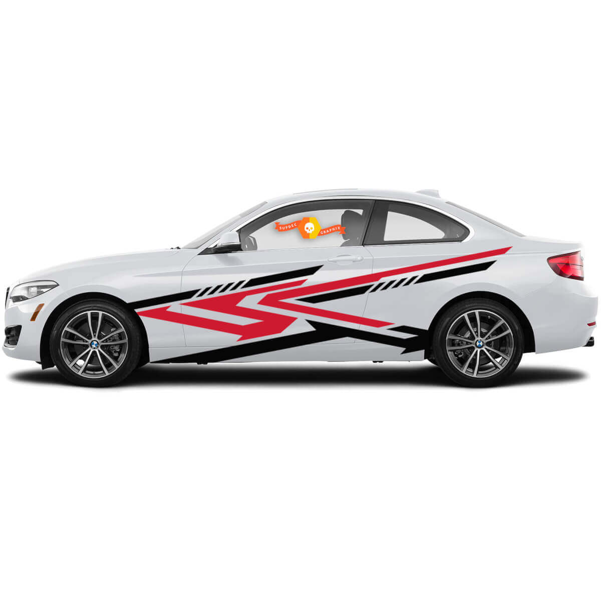 Este juego consiste en un par de calcomanías gráficas de vinilo diseñadas para los laterales de BMW. Estas calcomanías laterales presentan líneas gráficas estilizadas y zigzags que son fáciles de aplicar en el lateral de tu coche.