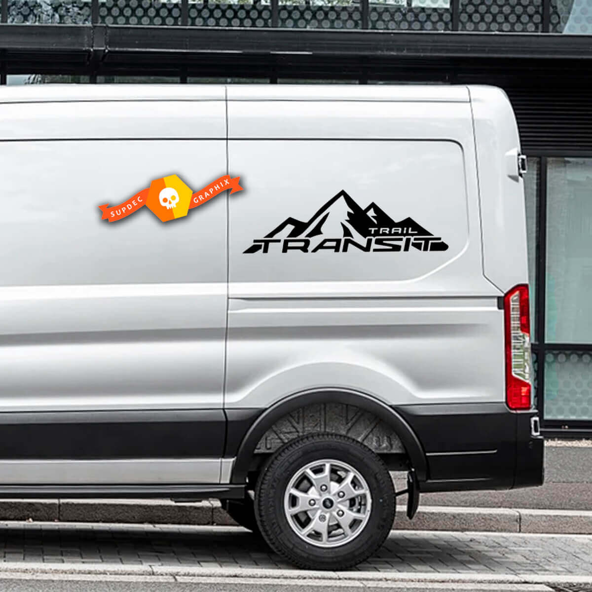 Par de calcomanías de vinilo con logotipo de montaña FORD TRANSIT-TRAIL 2023 de cualquier tamaño para Nissan, Toyota, Chevy, GMC, Dodge, Ford