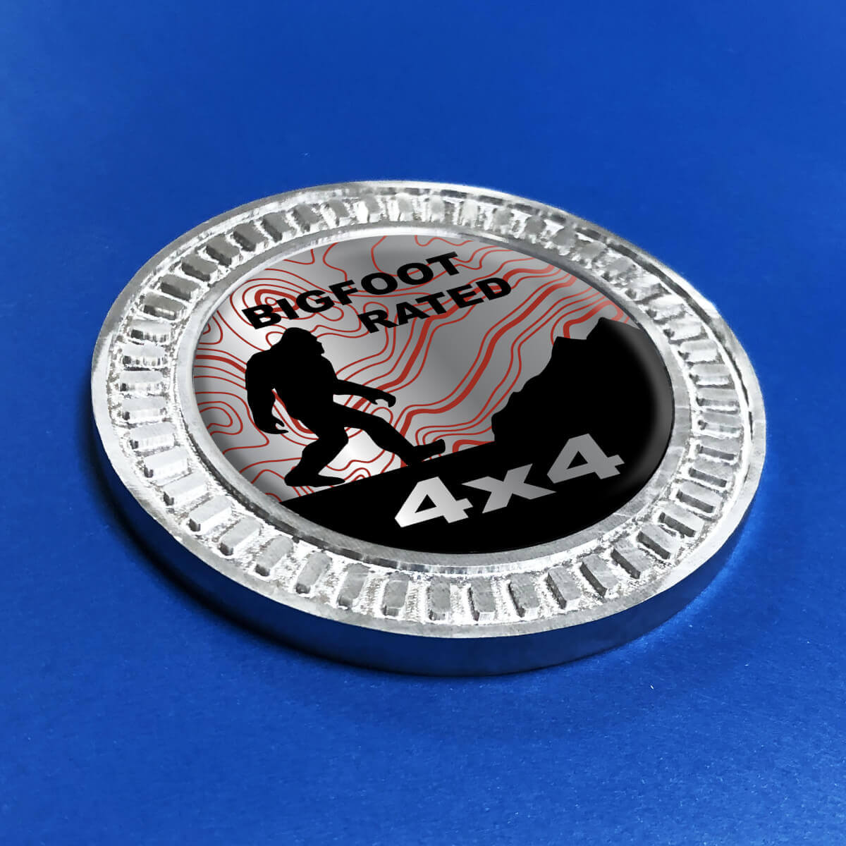 Insignia 3D Bigfoot montañas clasificadas líneas topográficas emblema de aluminio de Metal