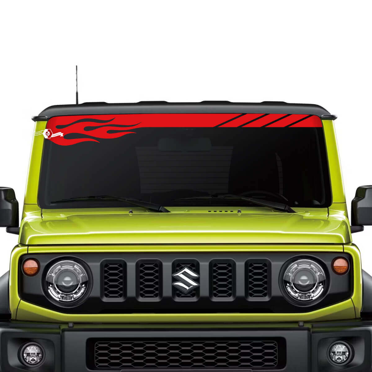 Mejora el aspecto de tu Suzuki JIMNY con nuestra vibrante calcomanía gráfica de llama para parabrisas. Diseñadas para ajustarse perfectamente a tu parabrisas, estas calcomanías aportan un estilo audaz y ardiente que destaca en la carretera.