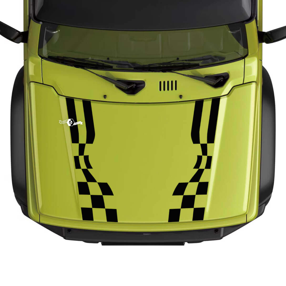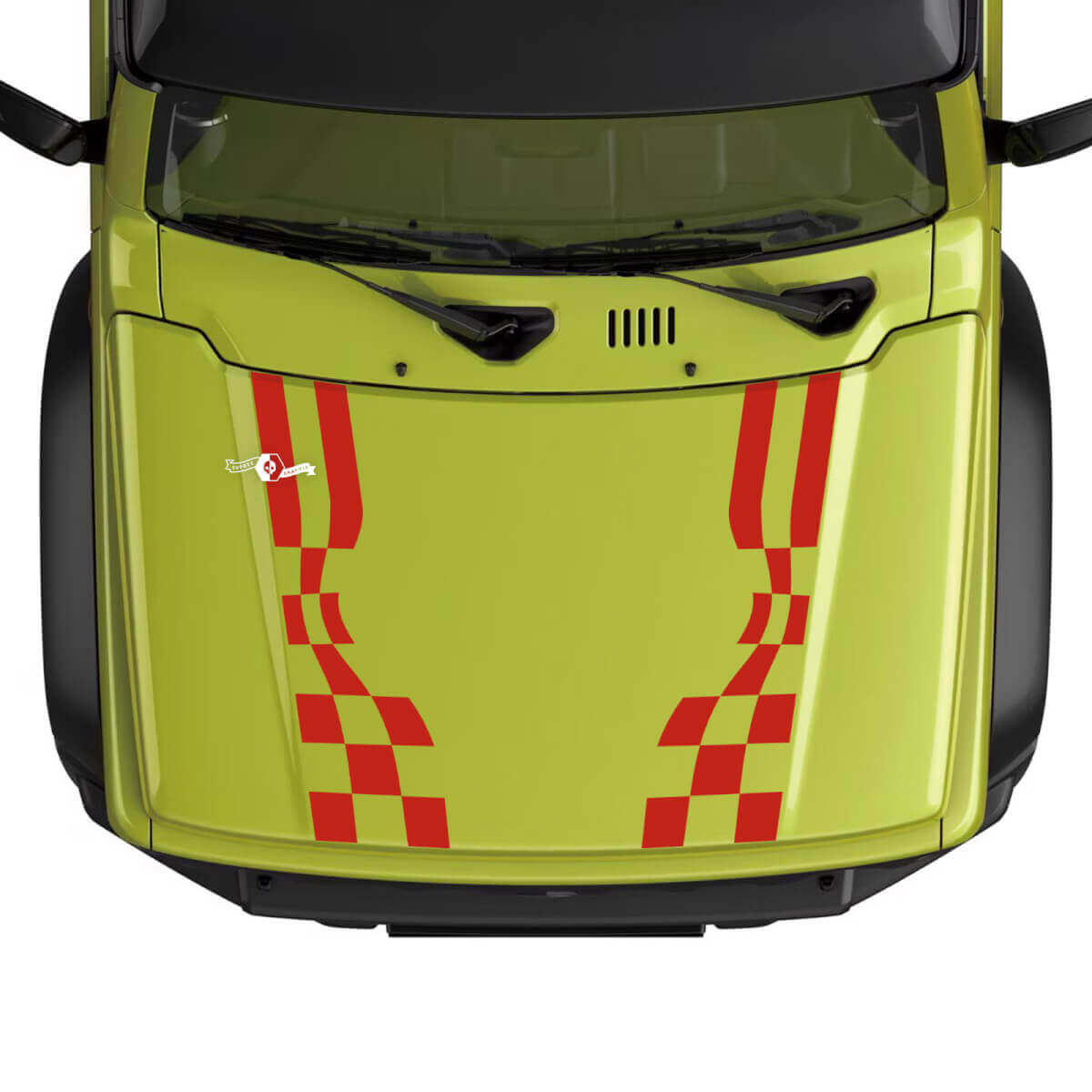 Calcomanía de franjas en el capó Suzuki JIMNY con diseño de bandera a cuadros