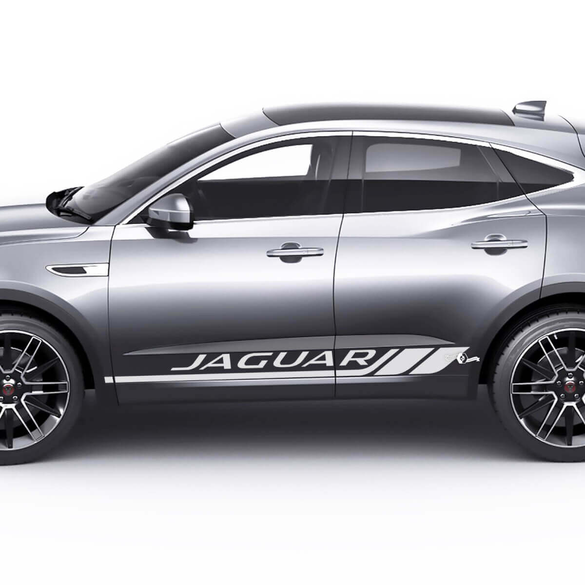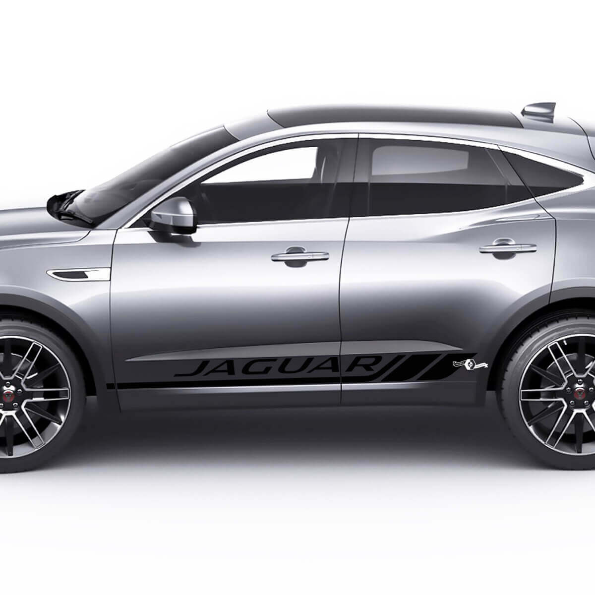 Mejora tu Jaguar E-Pace con nuestra calcomanía de gráficos con rayas para las puertas laterales, diseñada para añadir un toque elegante a tu vehículo. Esta calcomanía de vinilo de alta calidad presenta un diseño de logo estilizado, perfectamente dimensionado para las puertas laterales del Jaguar E-Pace.