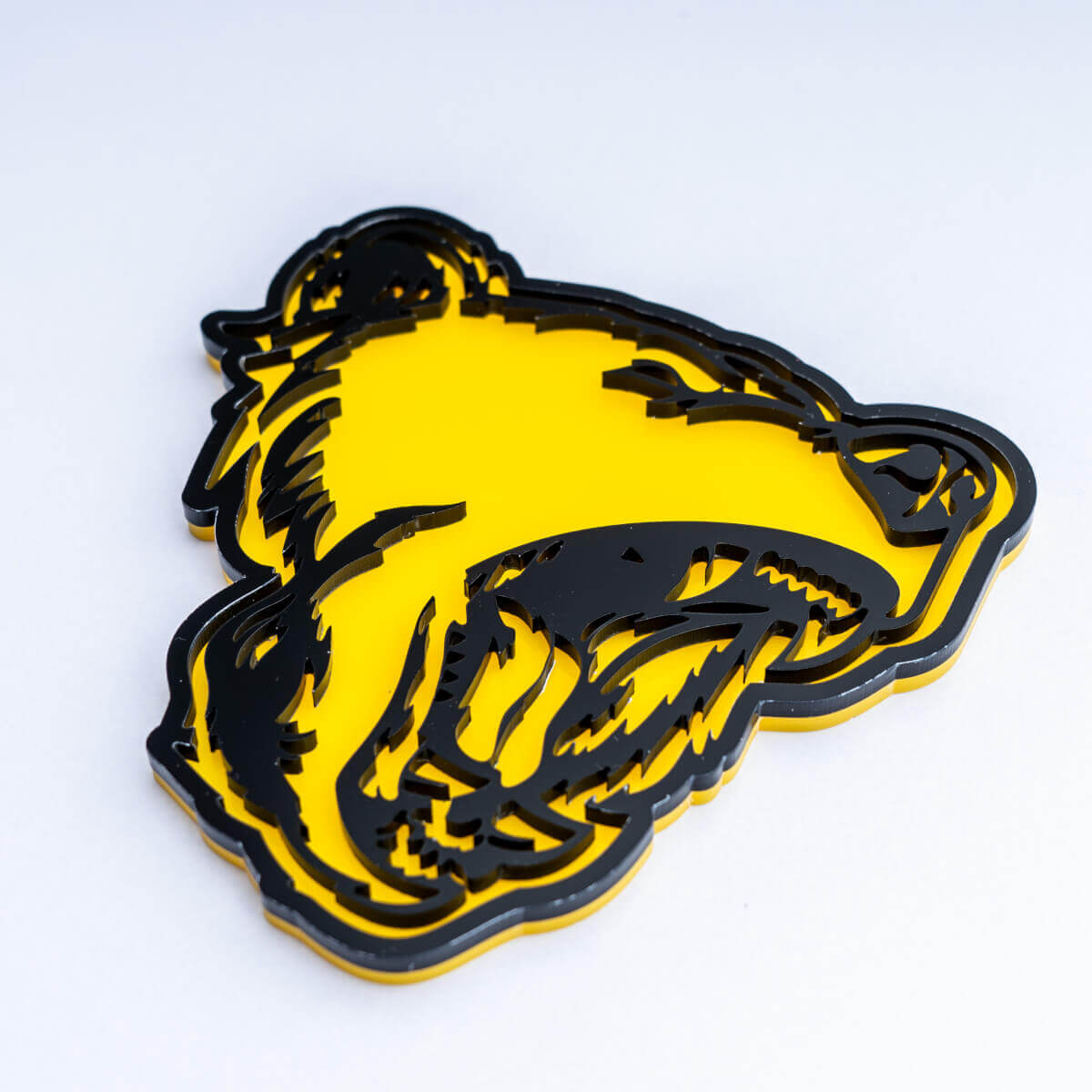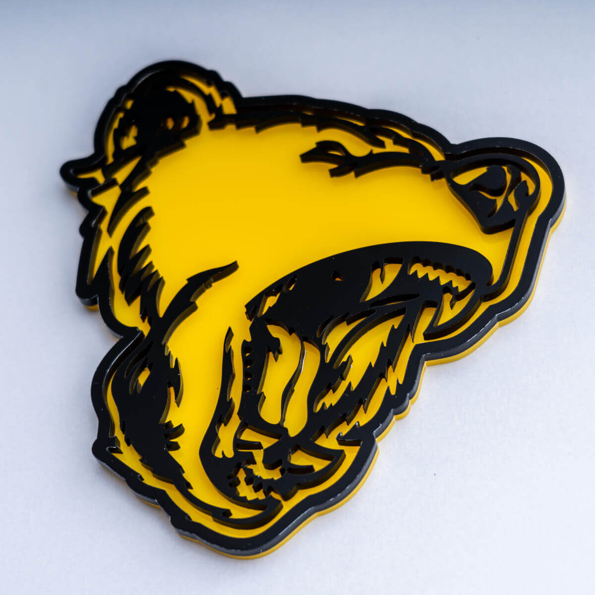 - Diseño 3D dinámico de oso grizzly para una apariencia audaz y distintiva