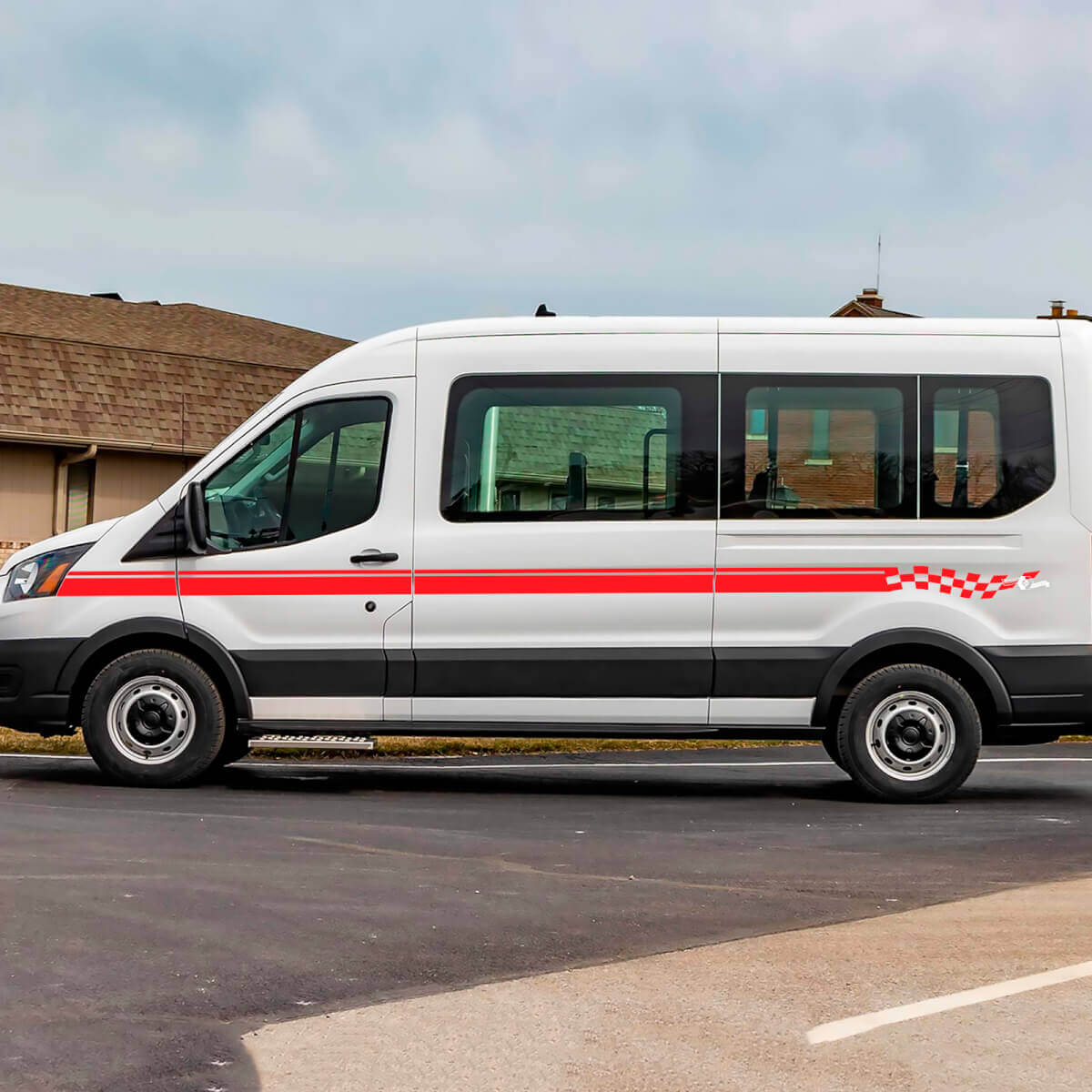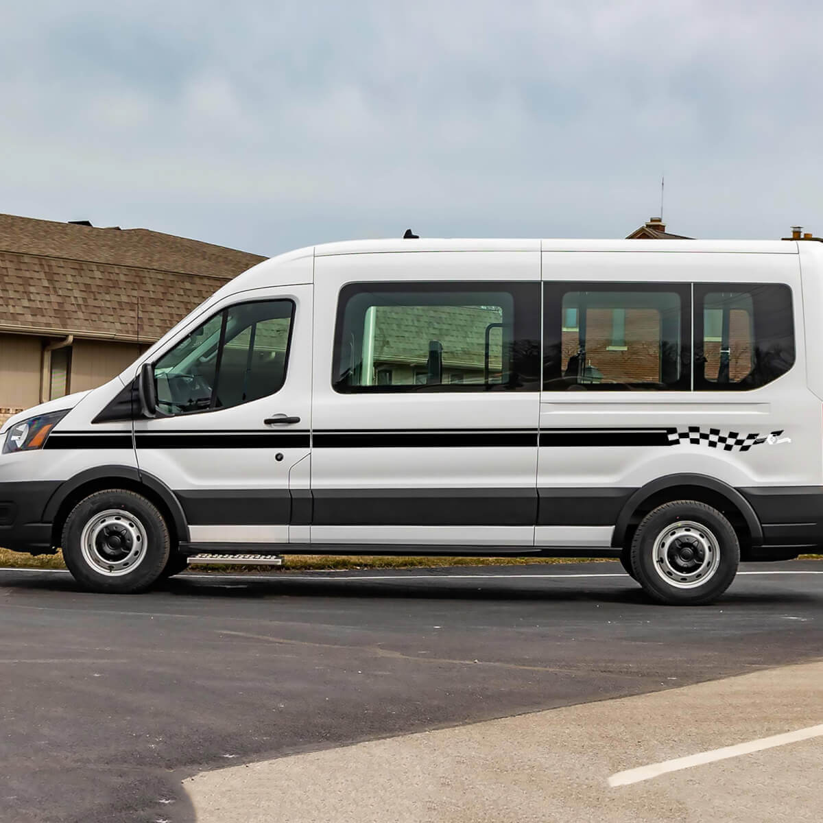 Calcomanías de rayas a cuadros de vinilo para los laterales de Ford Transit