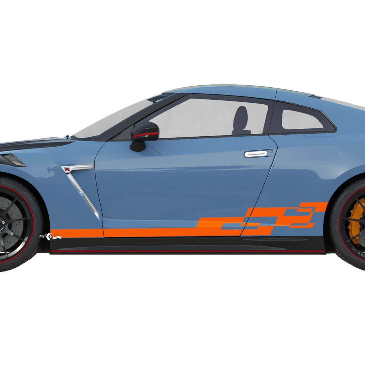 Mejore la estética de su Nissan GT-R con el kit de calcomanías de franjas con gráficos ajedrezados laterales