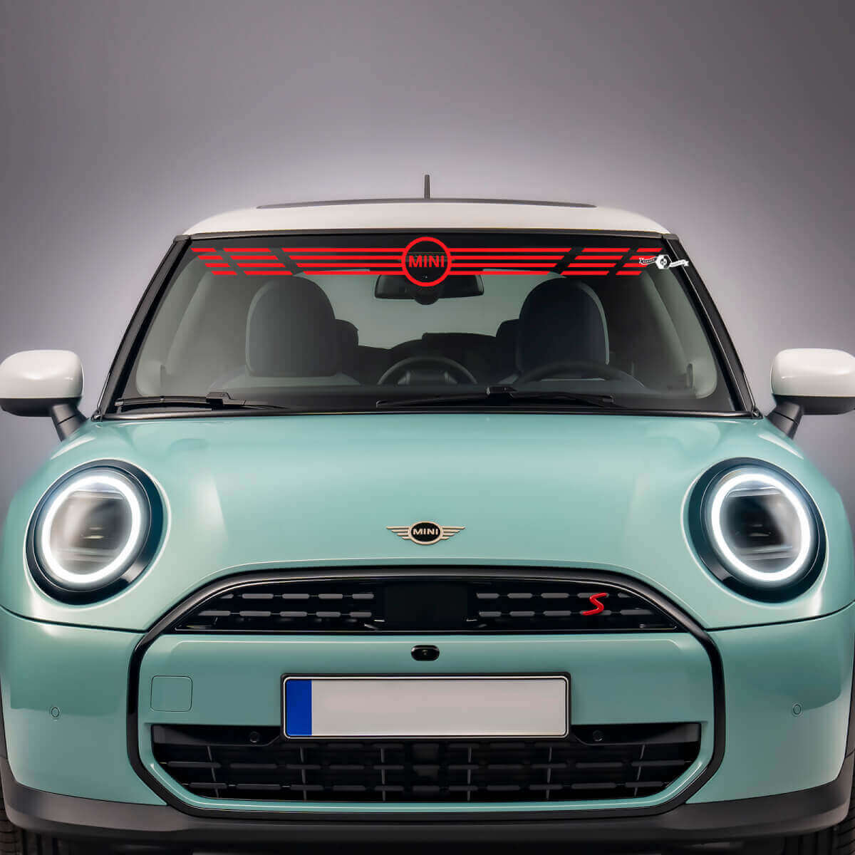 Mejora tu Mini Cooper S con una elegante calcomanía de vinilo para la franja del parabrisas