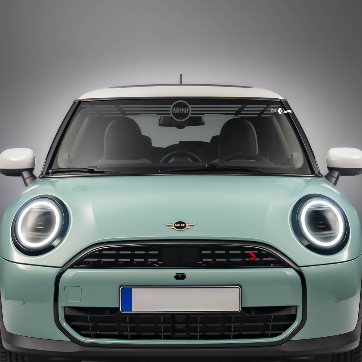 Actualice su Mini Cooper S con una elegante calcomanía de vinilo de rayas de parabrisas
