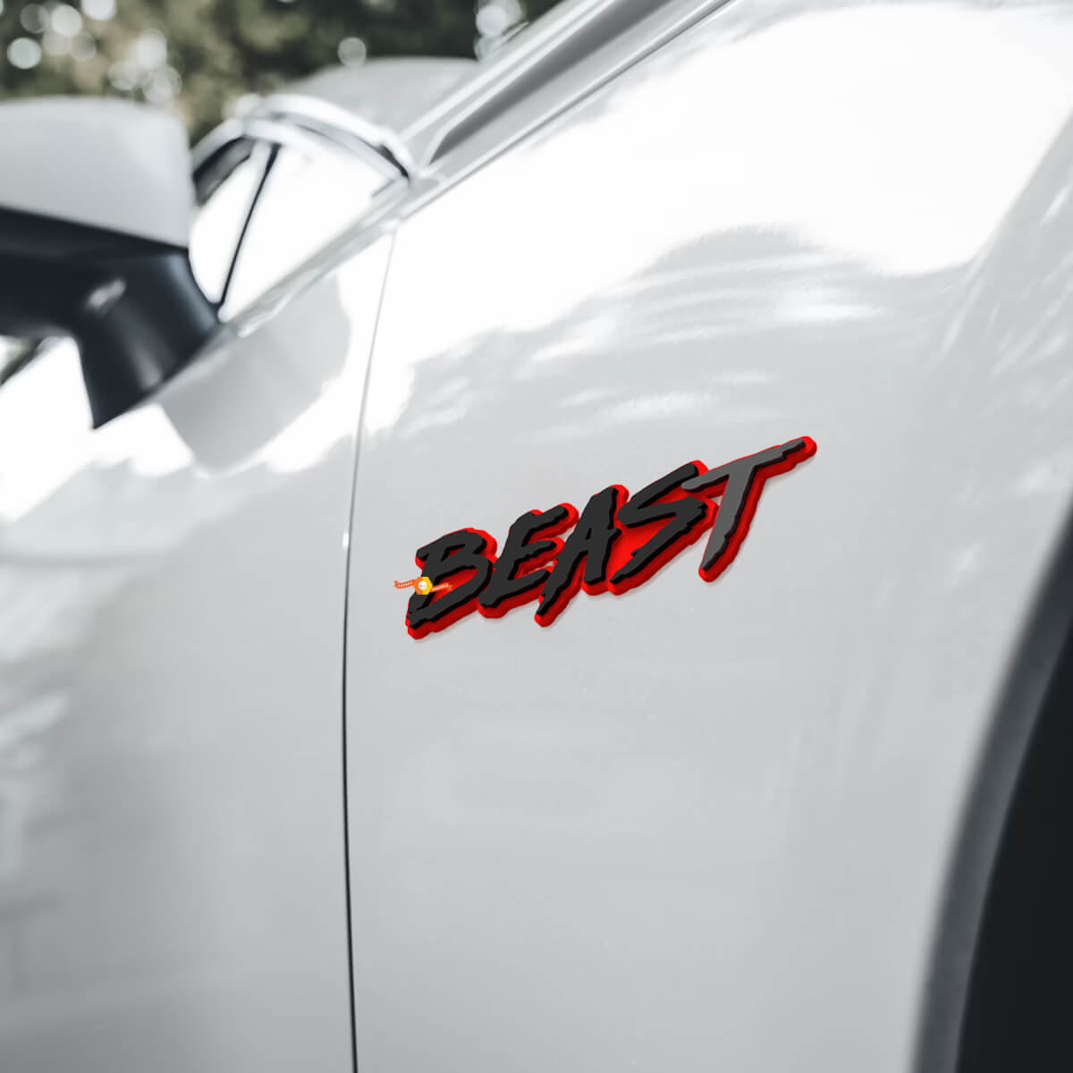 Lleva tu coche al siguiente nivel con el emblema de guardabarros Beast 3D. ¡Haz tu pedido hoy y disfruta del envío mundial a EE. UU., Canadá y Europa. Haz una declaración donde sea que vayas con este llamativo emblema!