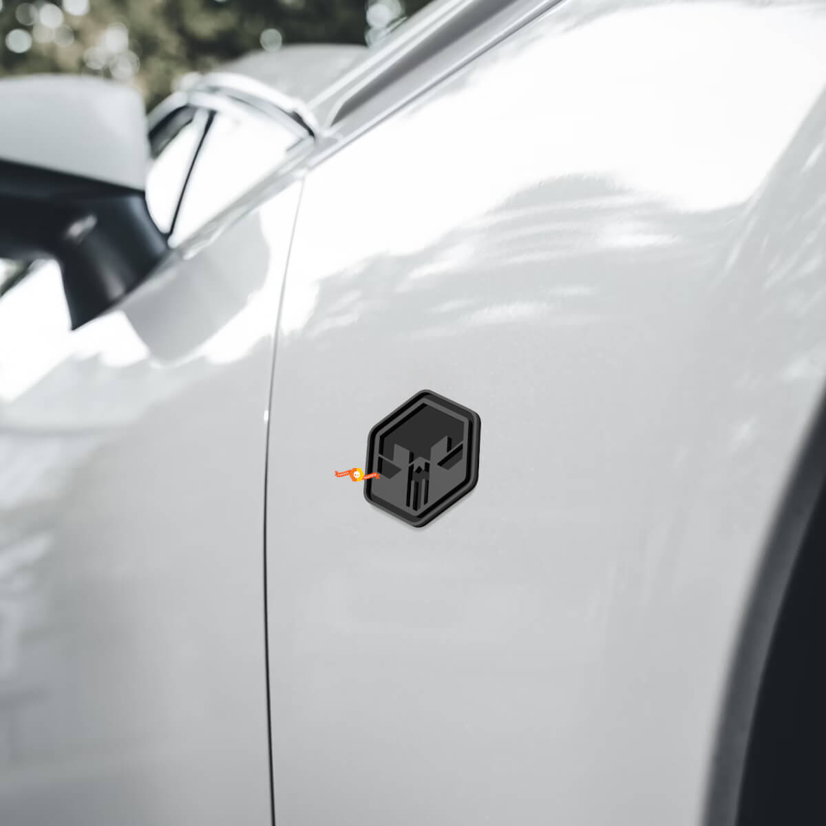 Mejora el estilo de tu vehículo con nuestra Insignia de Calavera en Hexágono para Guardabarros y Emblema para Portón Trasero en 3D. Este emblemático diseño combina una calavera audaz encerrada en un elegante hexágono, creando un aspecto único y atrevido para tu coche, camión o SUV.