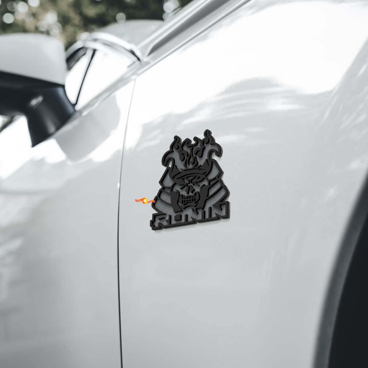 Mejora el estilo de tu vehículo con nuestra Insignia de Guardabarros Skull Samurai Ronin Emblema para Portón 3D. Este llamativo emblema 3D combina elementos de diseño audaces, con un feroz samurái calavera fusionado con un motivo ronin terminator, perfecto para quienes desean hacer una declaración poderosa en su auto o camioneta.