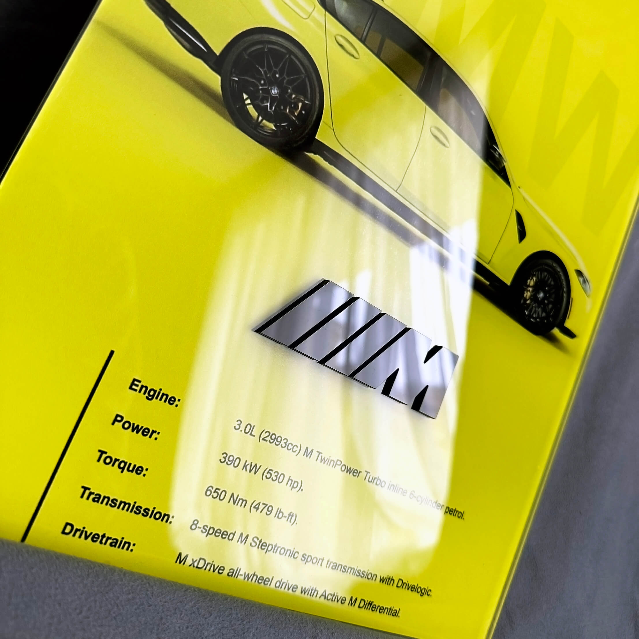 Mejora tu garaje o espacio personal con este Panel de Arte Mural Acrílico Brillante BMW M3 G80. Diseñado para amantes de los coches, presenta un acabado elegante y brillante que resalta el estilo icónico del BMW M3 G80.