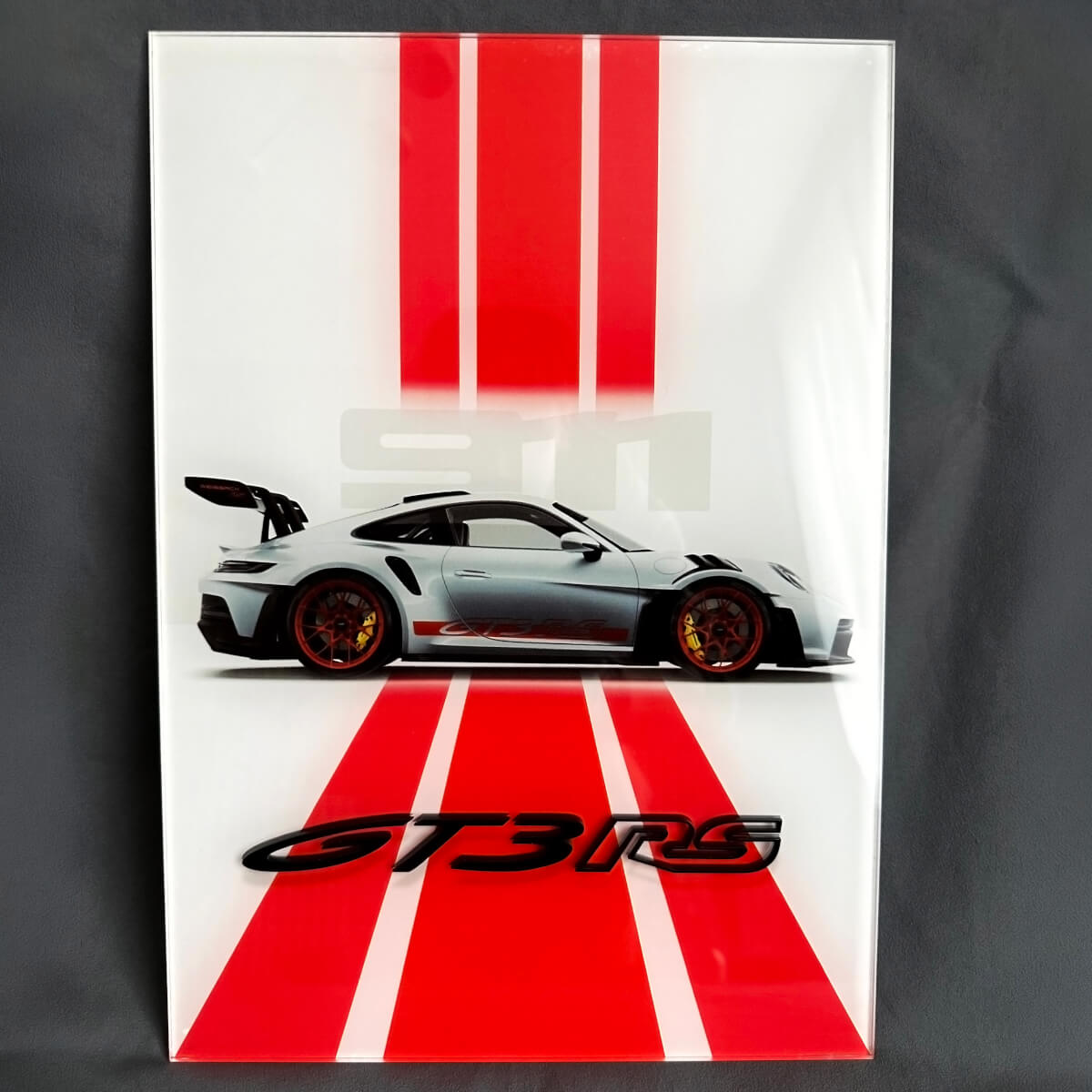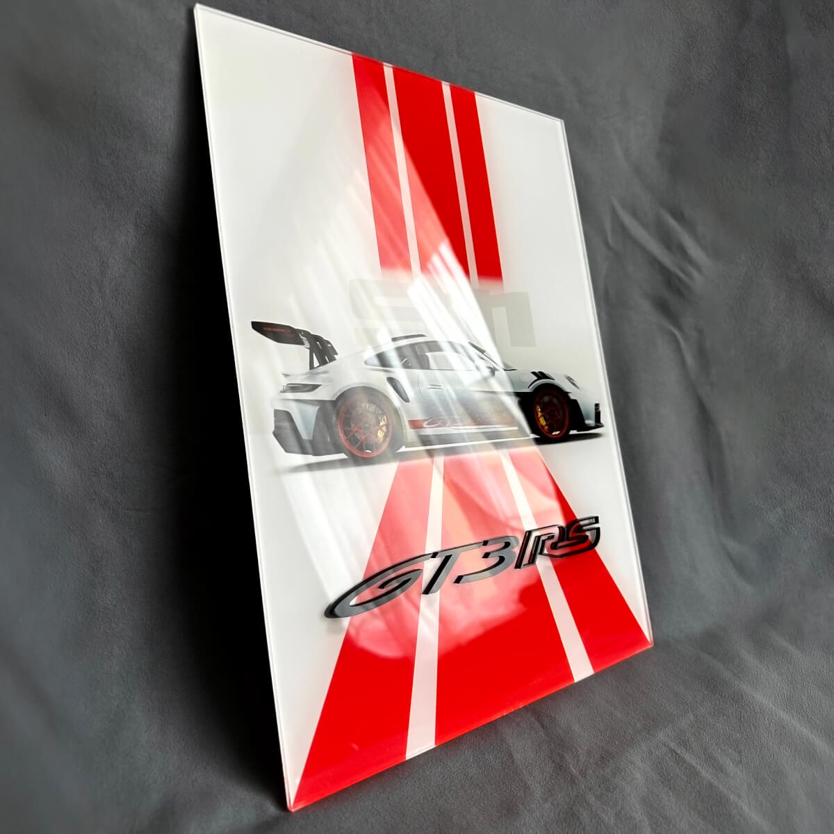 Mejore su garaje o espacio de trabajo con el Panel de Arte Mural de Acrílico Brillante para Garaje GT3 RS. Este arte mural premium presenta un acabado elegante y brillante que captura el diseño icónico del GT3 RS, convirtiéndolo en un imprescindible para los entusiastas de los coches.