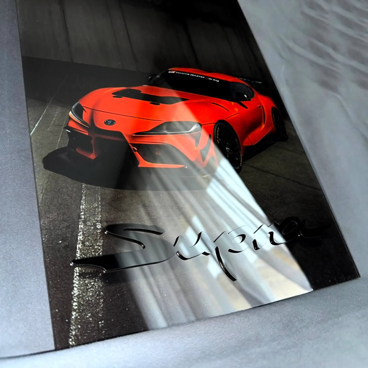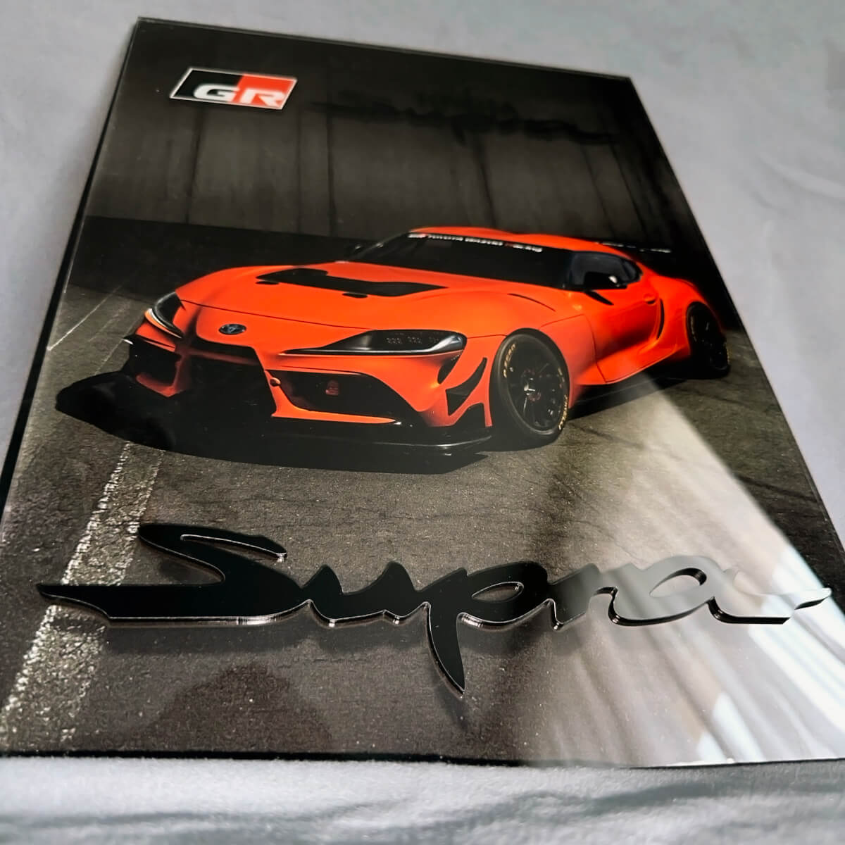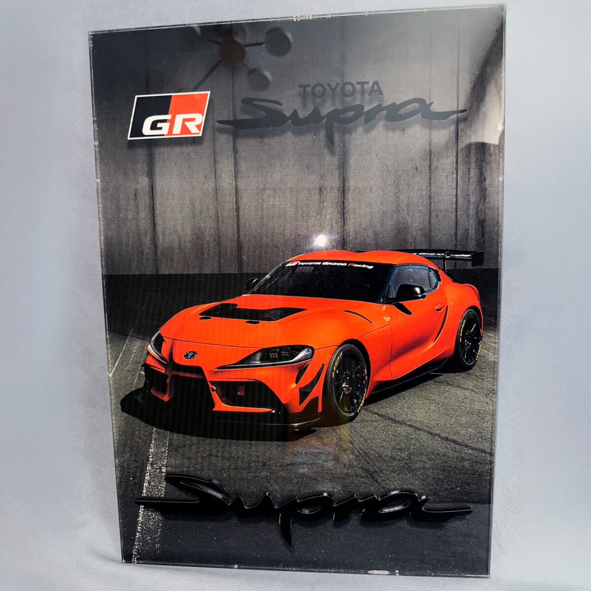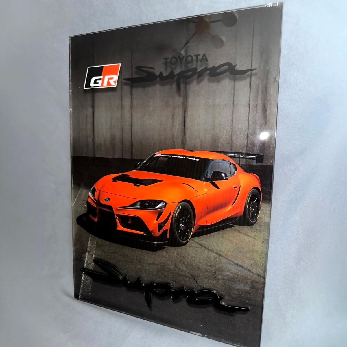Panel de arte de pared de garaje de acrílico brillante personalizado Toyota Supra