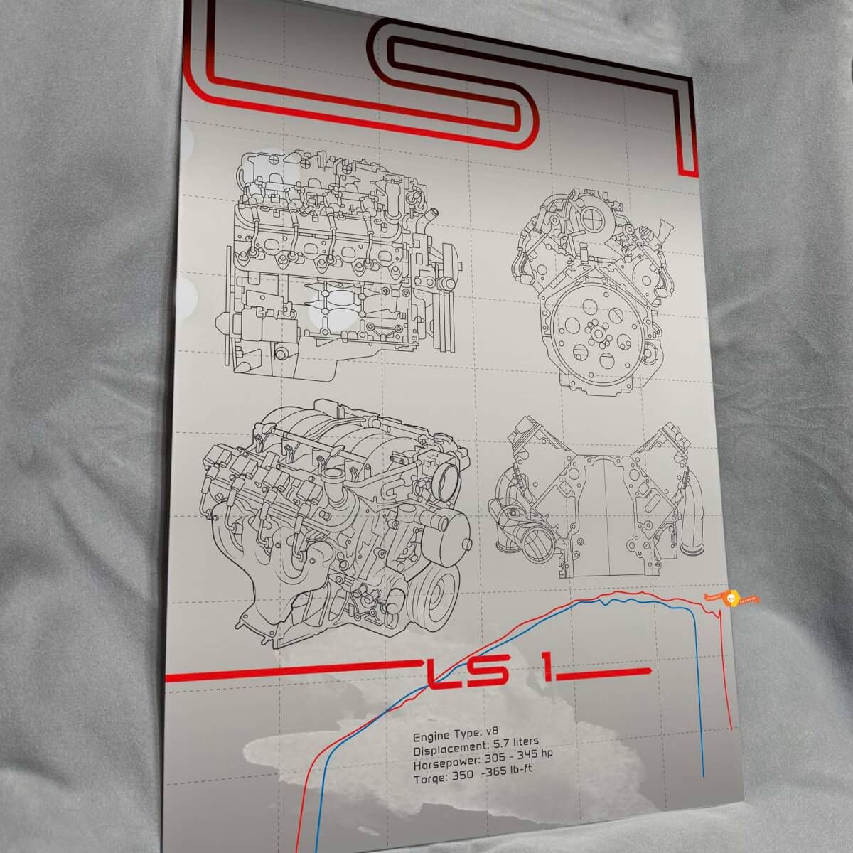 - Diseño personalizable para mostrar su propia configuración específica del motor LS1