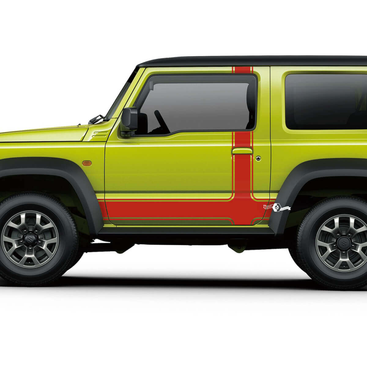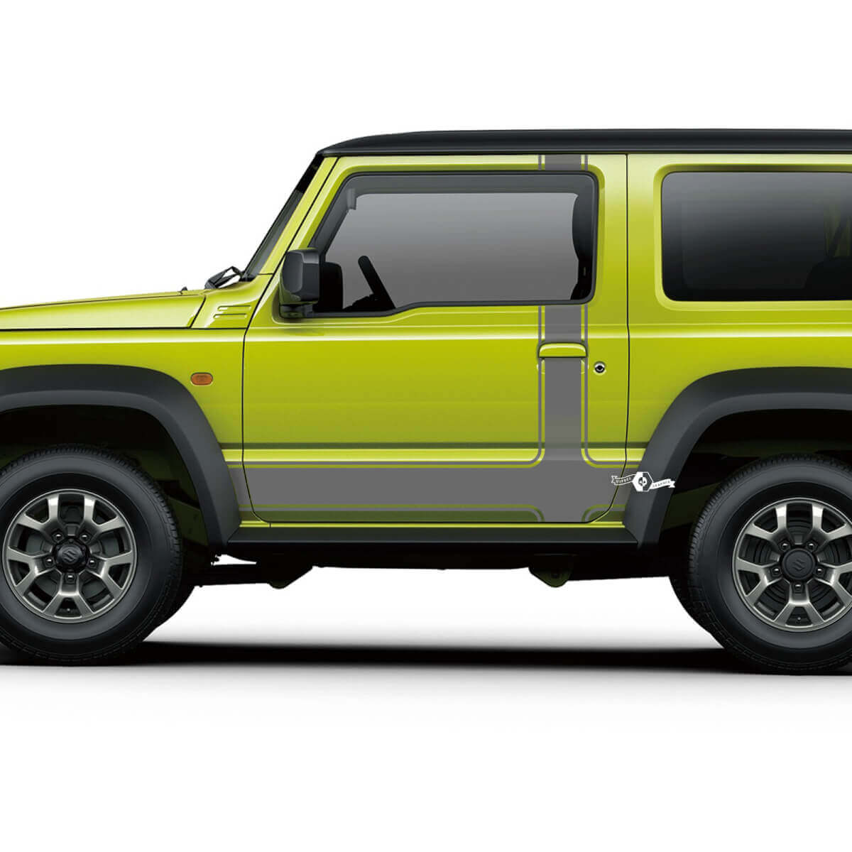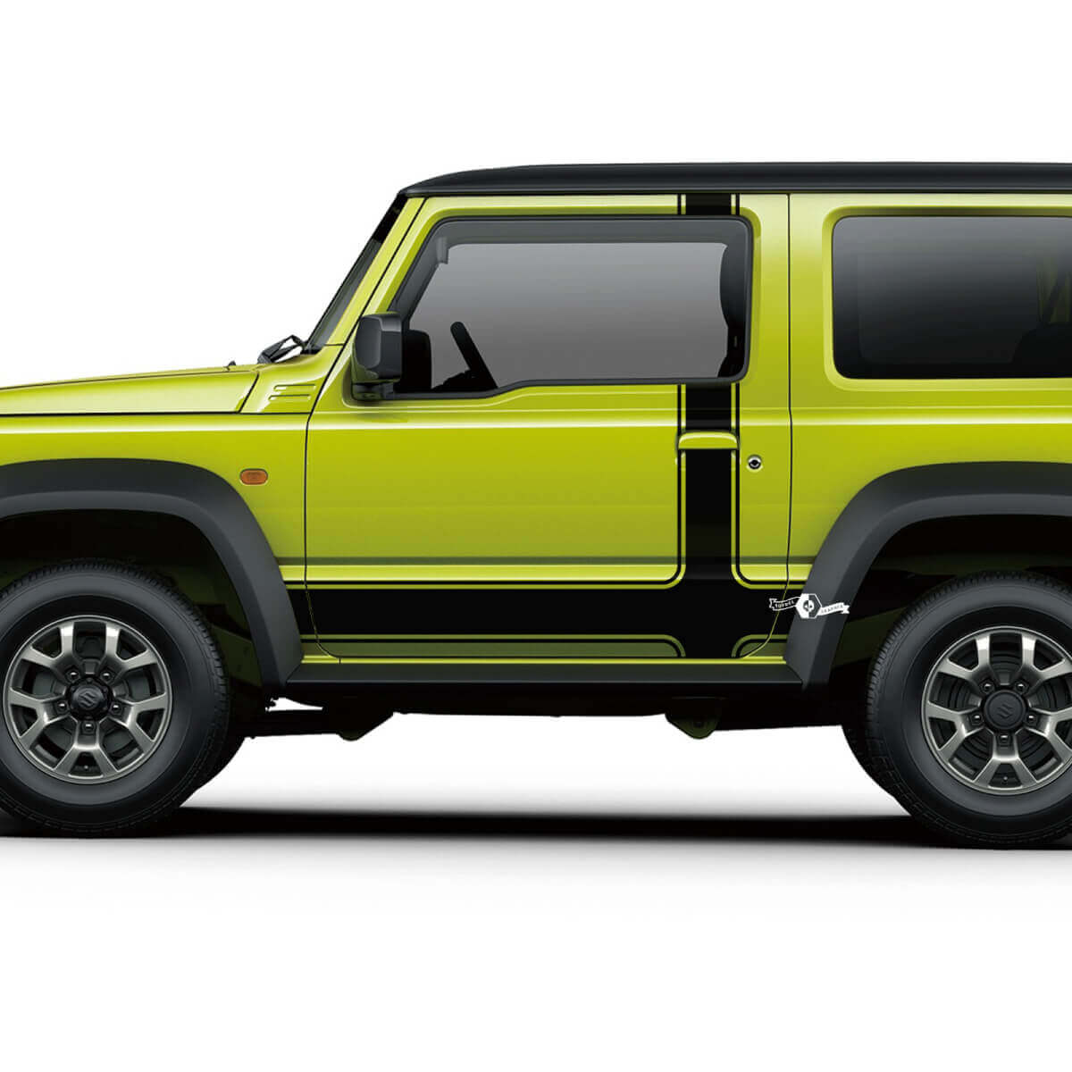Mejore el aspecto de su Suzuki JIMNY con nuestro adhesivo de franjas para puertas laterales, diseñado para un ajuste perfecto y una apariencia elegante.