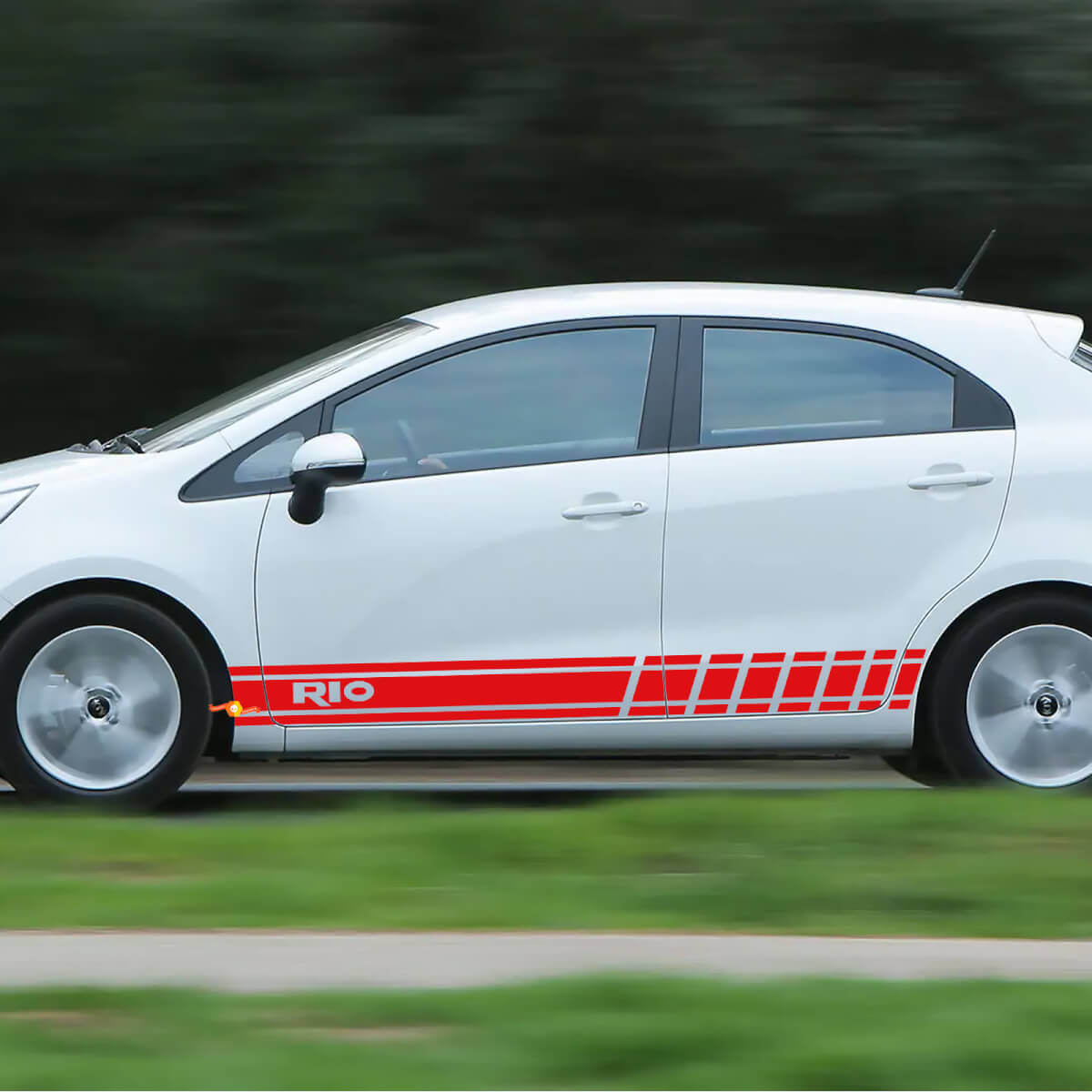 Mejora el aspecto de tu Kia Rio con nuestra calcomanía de vinilo con franjas laterales de carreras. Diseñadas para un ajuste perfecto, estas calcomanías añaden un toque deportivo a tu vehículo, haciéndolo destacar en la carretera.