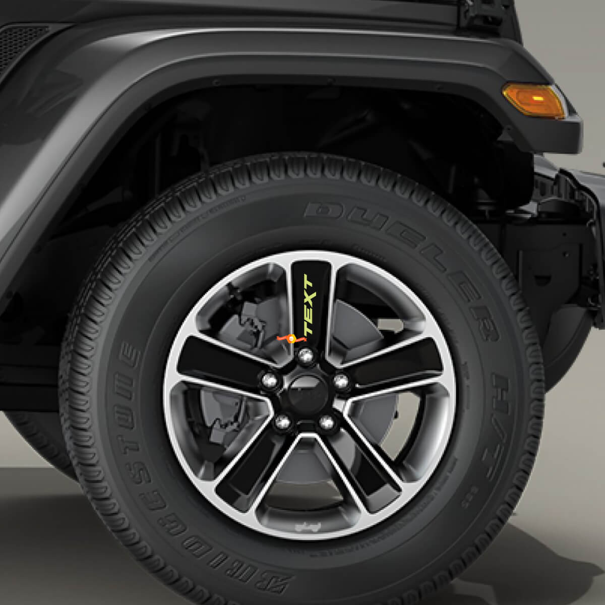 Agrega un toque único a tu Jeep con nuestro Juego de Calcomanías de Texto Personalizado para Ruedas. Diseñadas específicamente para ruedas Jeep, estas calcomanías son duraderas, resistentes a la intemperie y fáciles de aplicar, haciendo que tu vehículo destaque en la carretera.
