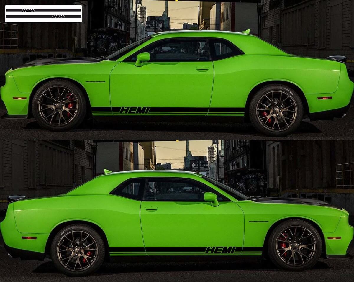 Considerando todos sus deseos y basándonos en sus requisitos, queridos clientes, hemos creado una obra maestra completamente nueva y de tendencia moderna: calcomanías laterales 2X DODGE CHALLENGER HEMI en vinilo 2009-2018. Vale la pena mencionar ahora que hay muchas ventajas que son lo suficientemente importantes y pueden persuadirle fácilmente para comprar esta calcomanía personalizada para autos en este mismo instante. Resistencia al agua, intercambiabilidad, todo tipo de modelos en esta línea de calcomanías de vinilo, así como una superficie de accesorio perfectamente lisa y muchas otras características harán que su compra sea inolvidable. Así que no pierda tiempo: ¡compre solo lo mejor!