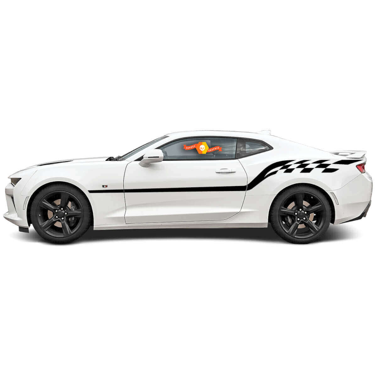 Mejora tu Chevrolet Camaro 2010-2020 con nuestro vinilo de franjas laterales estilo a cuadros. Diseñado para entusiastas del automovilismo que desean un aspecto audaz inspirado en las carreras, estas calcomanías están hechas de vinilo premium para una durabilidad prolongada y aplicación sencilla.