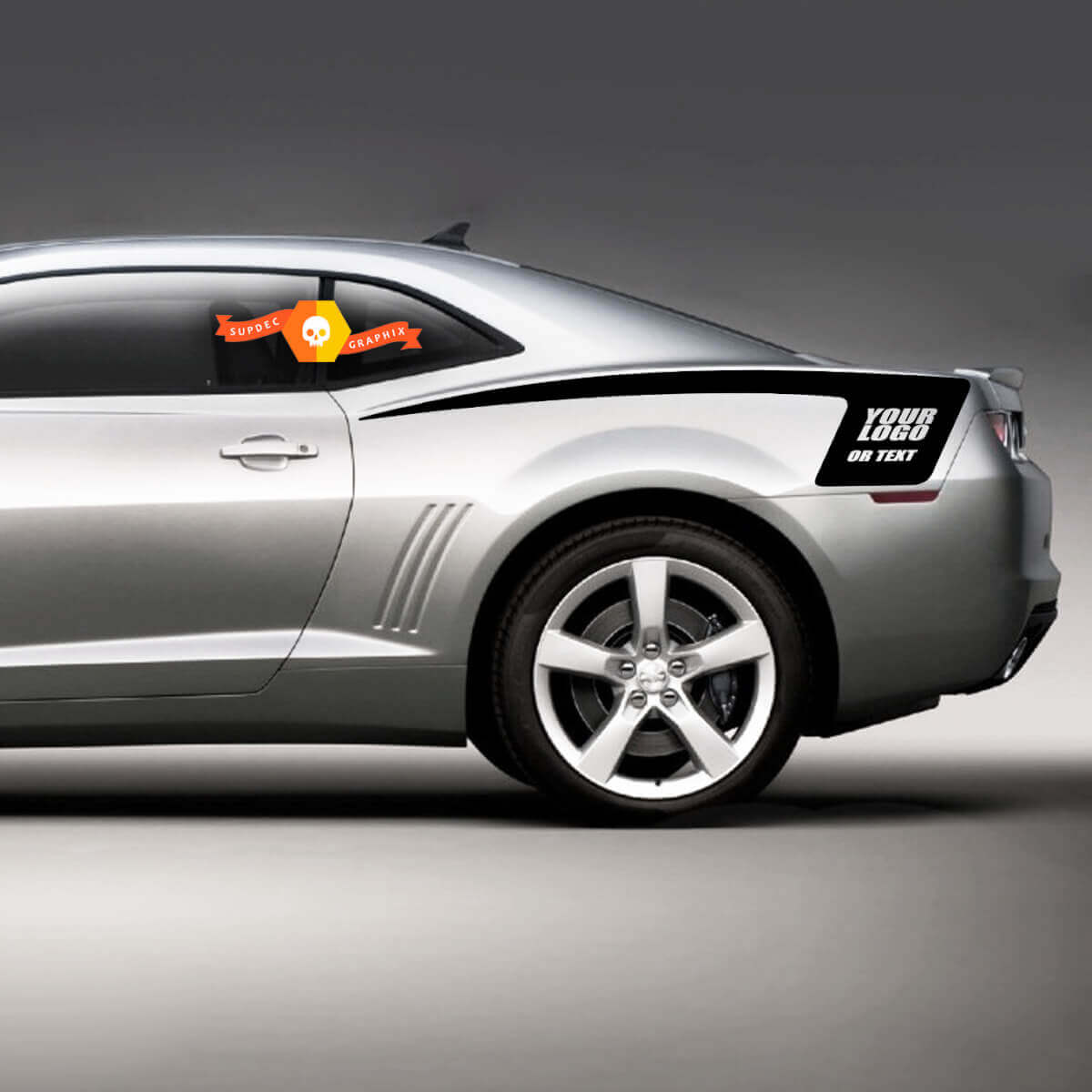 Mejore su Chevrolet Camaro con nuestras pegatinas de franjas laterales para el cuarto trasero. Diseñadas para adaptarse perfectamente a las líneas únicas de su Camaro, estas pegatinas añaden un toque deportivo y elegante que destaca en la carretera.