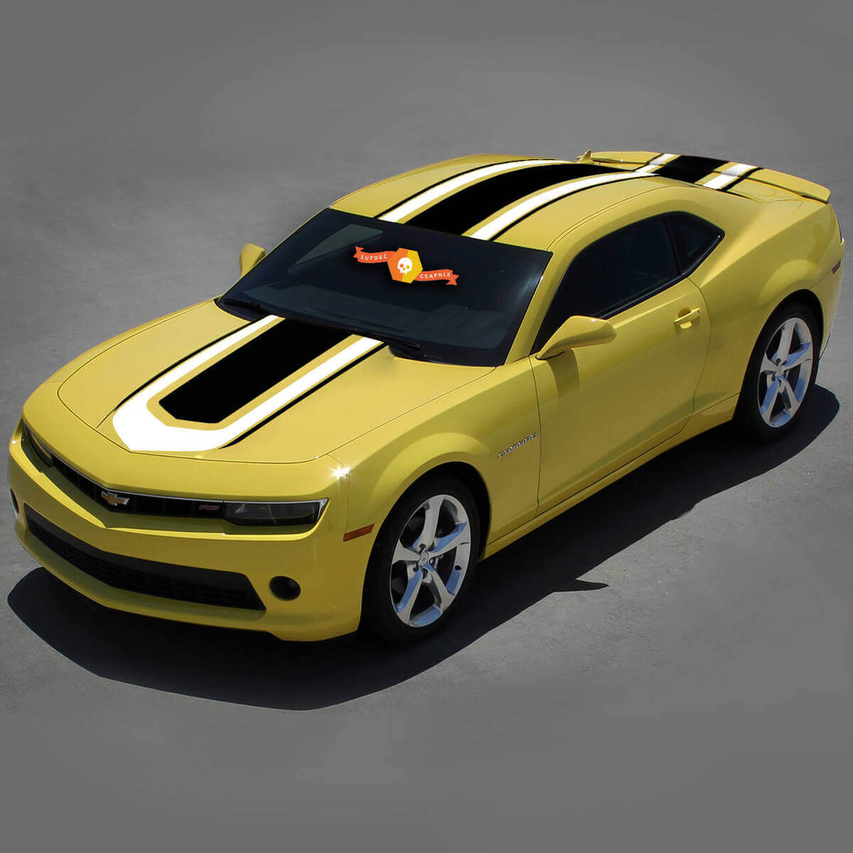 Las pegatinas son impermeables, protegidas contra rayos UV y pueden retirarse fácilmente sin dañar la carrocería del auto. El kit incluye franjas largas y anchas que se aplican en el centro del capó, dándole a tu Camaro deportivo un aspecto espectacular y dinámico.