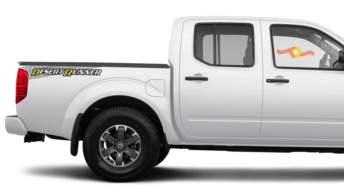 Mejora tu camioneta Nissan con este par de franjas de vinilo para los laterales de la caja Desert Runner. Diseñadas para darle a tu vehículo un aspecto robusto y estilizado, estas calcomanías son perfectas para los entusiastas de las camionetas Nissan.