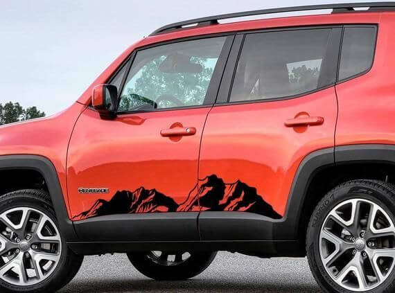 El paisaje montañoso representado en su coche es un ejemplo de una de las calcomanías de vinilo ya disponibles en nuestro sitio. En este accesorio, nuestros desarrolladores lograron combinar todas las opciones y características más necesarias para cada persona como usuario. Este es un producto impecable como las Nuevas Calcomanías para Jeep Renegade para el panel rocker con diseño de montañas en vinilo.